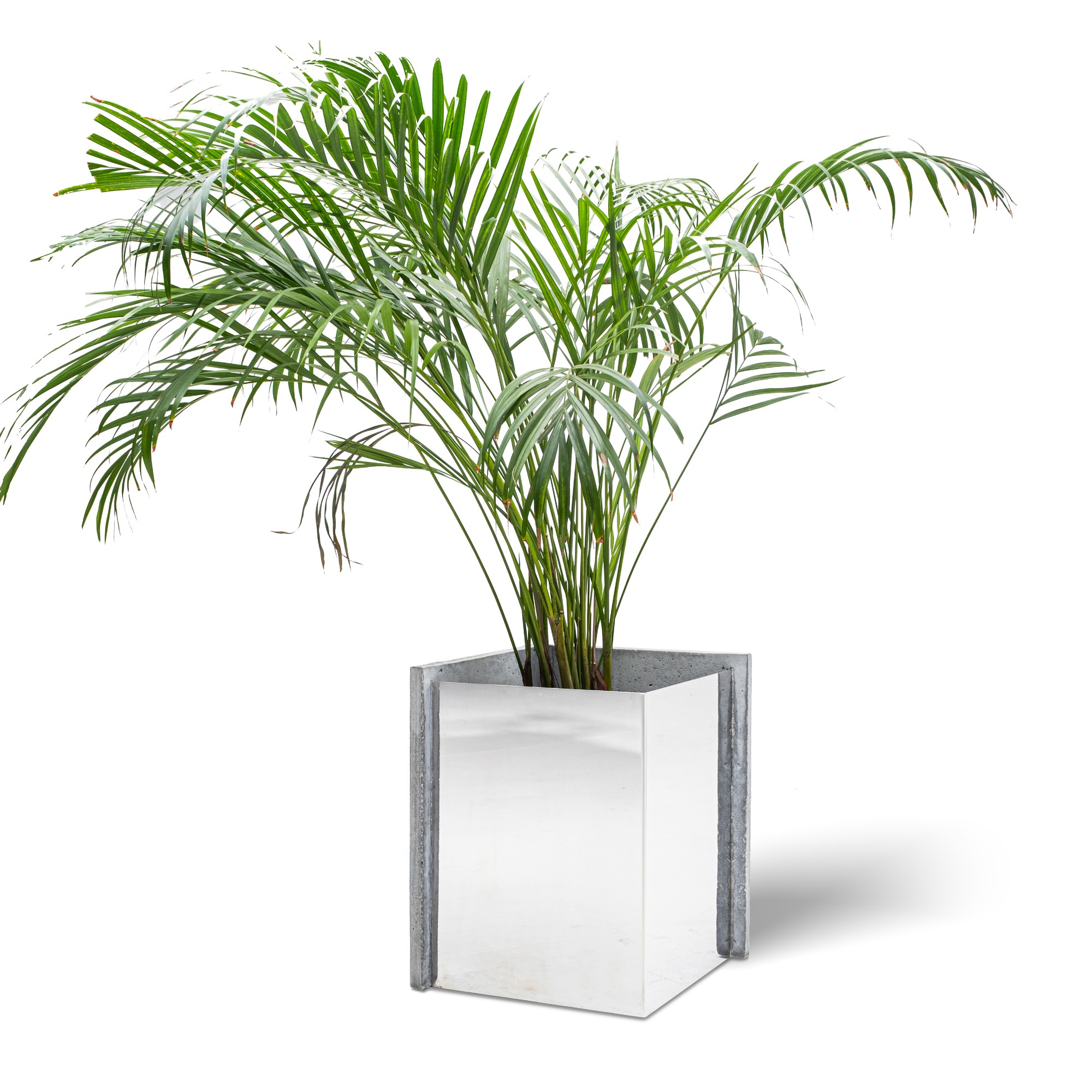 “Cortex”, yani “kabuk”, doğadaki katmanlı kayaç ve ağaç kabuğu yüzeylerinden ilham alan, iç içe geçen yapıların dışa vurumu olarak tasarlandı. Ham beton kabuk ile ayna yüzeyli paslanmaz çelik panelin birleşimi, bitkiye hem güçlü bir duruş hem de modern bir görünüm kazandırıyor. Bu ürün, sizin için el işçiliğiyle üretilir.