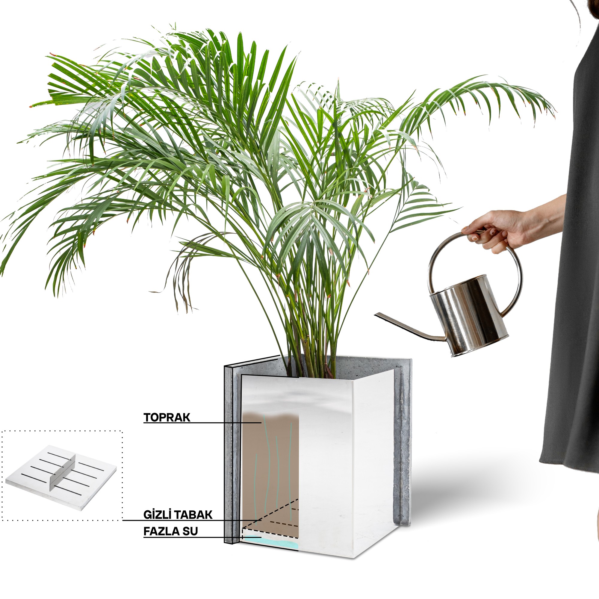 Gizli Tabak Sulama Sistemi: Fazla suyu tabanda toplayarak köklerin çürümesini engelleyen entegre çözüm.