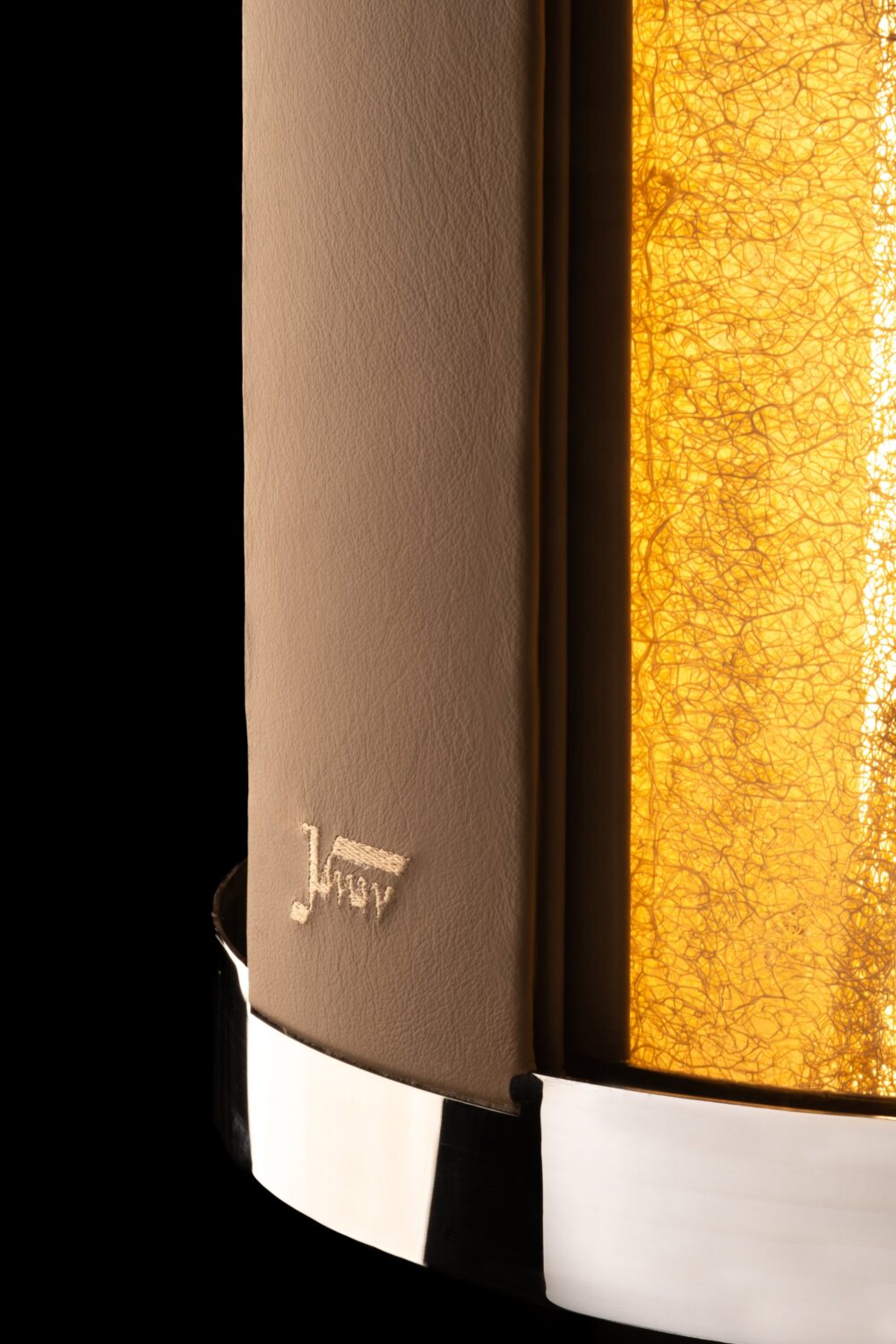 Yenilikçi bir malzemeden üretilen ışık kırıcı kabak lifi, hareketli deri kanatlar ve paslanmaz çelik iskeletin birleşiminden doğan modern ve deneyimsel lambader.