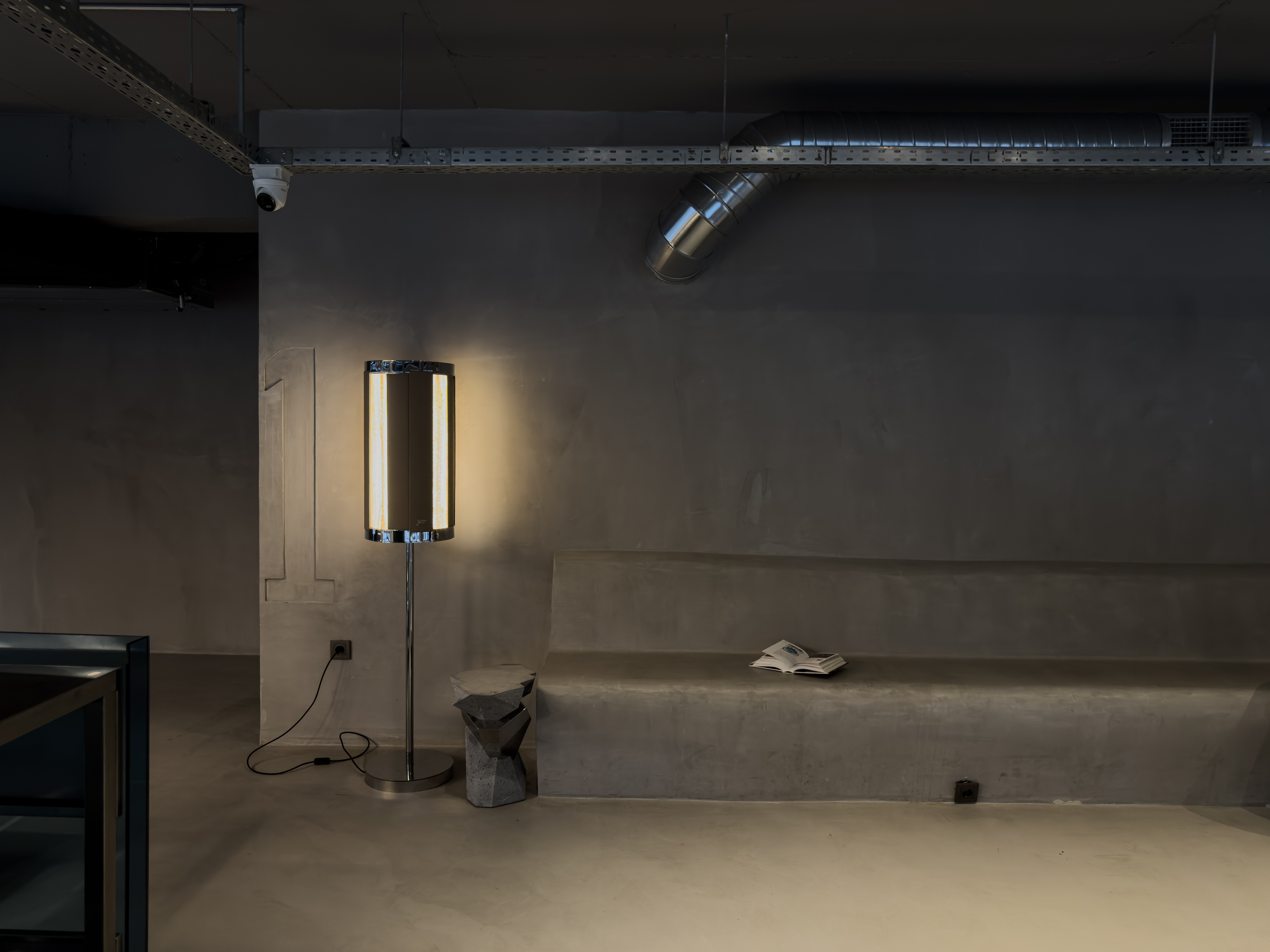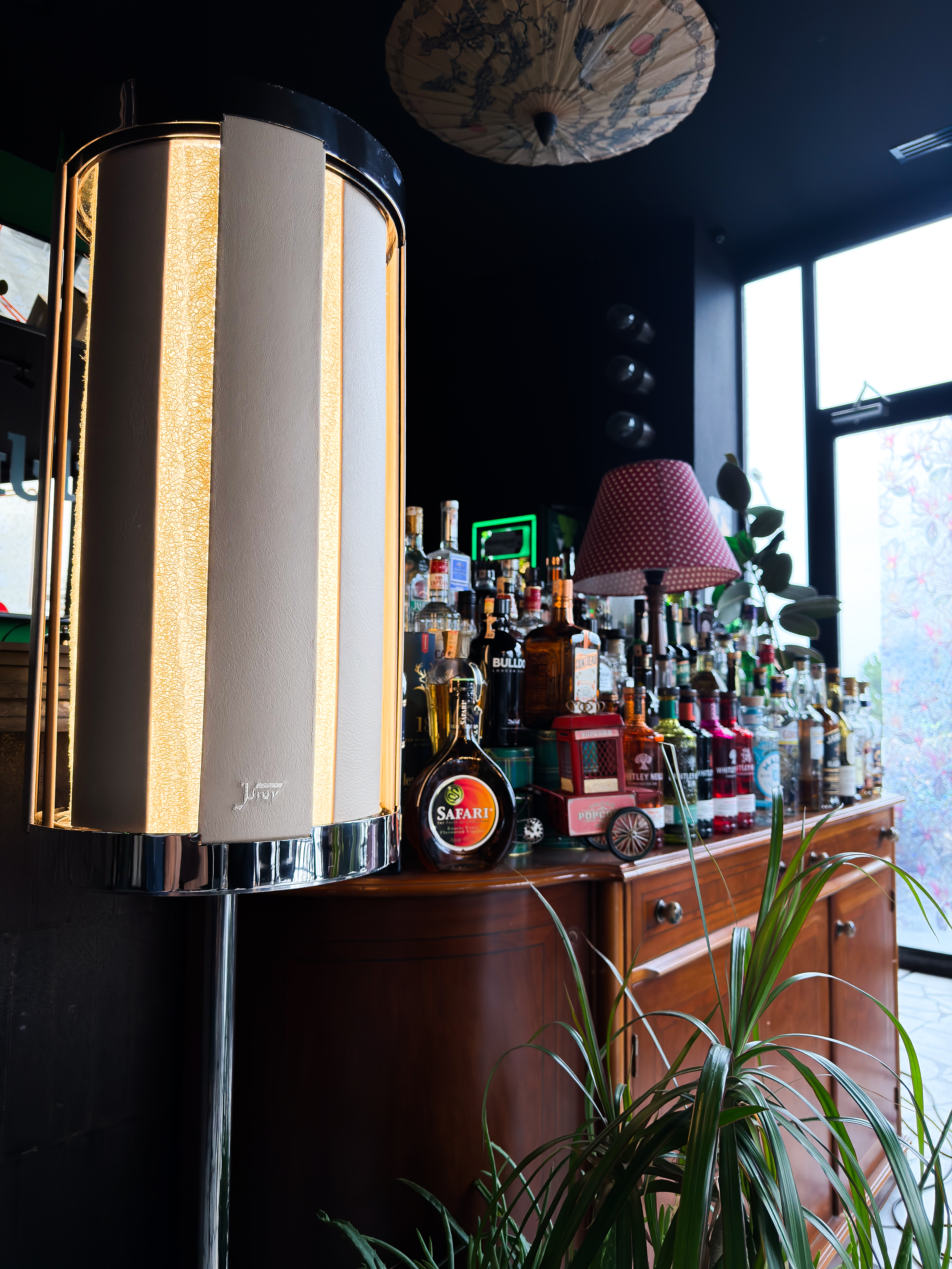 Tasarımda en dikkat çekici özellik, bu ürün özelinde tasarlanmış patentli mekanik ışık dimmer sistemidir. Bu sistem 3 katmandan oluşur. Her biri 90 derece açıyla yerleştirilmiş dörder adet kanada sahiptir. Bu kanatların ilk sırası sabitken, ikinci ve üçüncü sıra ters yönde aynı miktarda döner. Kullanıcı, en dıştaki deri kanatları eliyle hareket ettirdiğinde iç sıradaki mekanizma ters yönde döner ve böylece hiçbir elektronik devreye ihtiyaç duymadan mekanik bir dimmer işlevi ortaya çıkar.